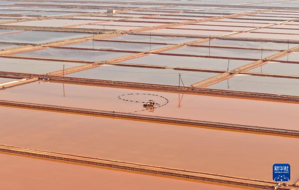 近日,河北省灤南縣鹽業生産企業,搶抓晴好天氣收穫秋鹽,鹽池內呈現出一派忙碌景象。據介紹,該縣鹽田面積達15000畝,年産原鹽達5萬多噸。
