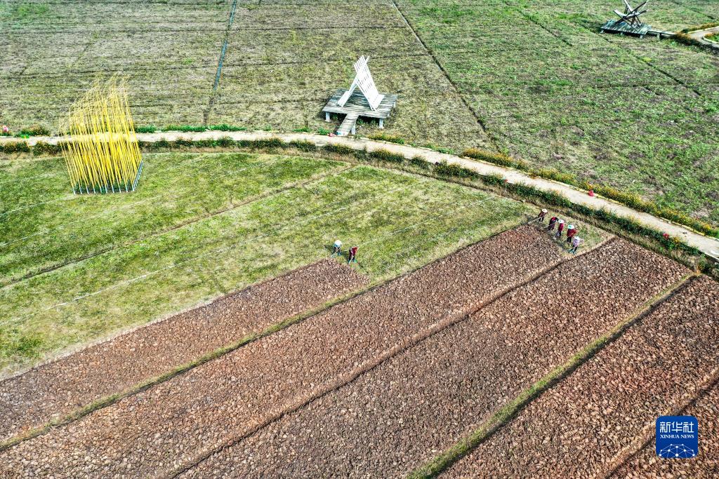 10月14日,重慶市將軍村的村民在田裏翻土,為輪種油菜做準備(無人機照片)。