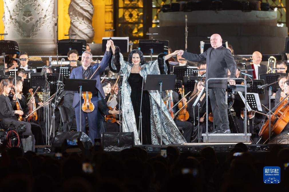 10月14日,在第22屆中國上海國際藝術節首場開幕演出上,指揮家克裏斯托夫·艾森巴赫、女高音歌唱家安吉拉·喬治烏、小提琴家馬克西姆·文格洛夫(前排從右至左)在表演後向觀眾致意。