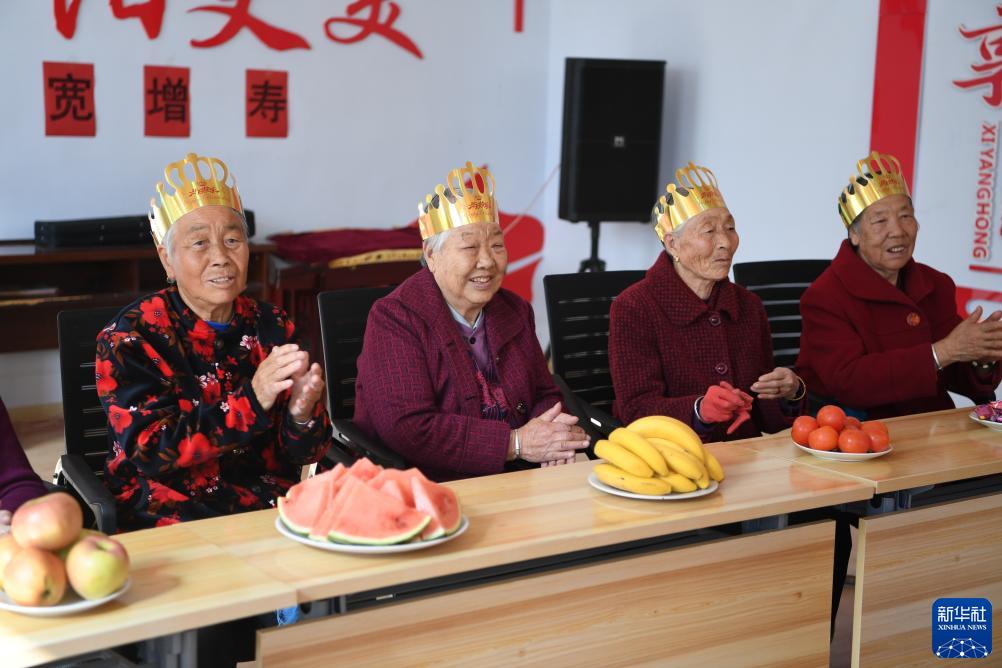 10月14日,居住在河北省康保縣土城子鎮互助幸福院的老人們在過集體生日。