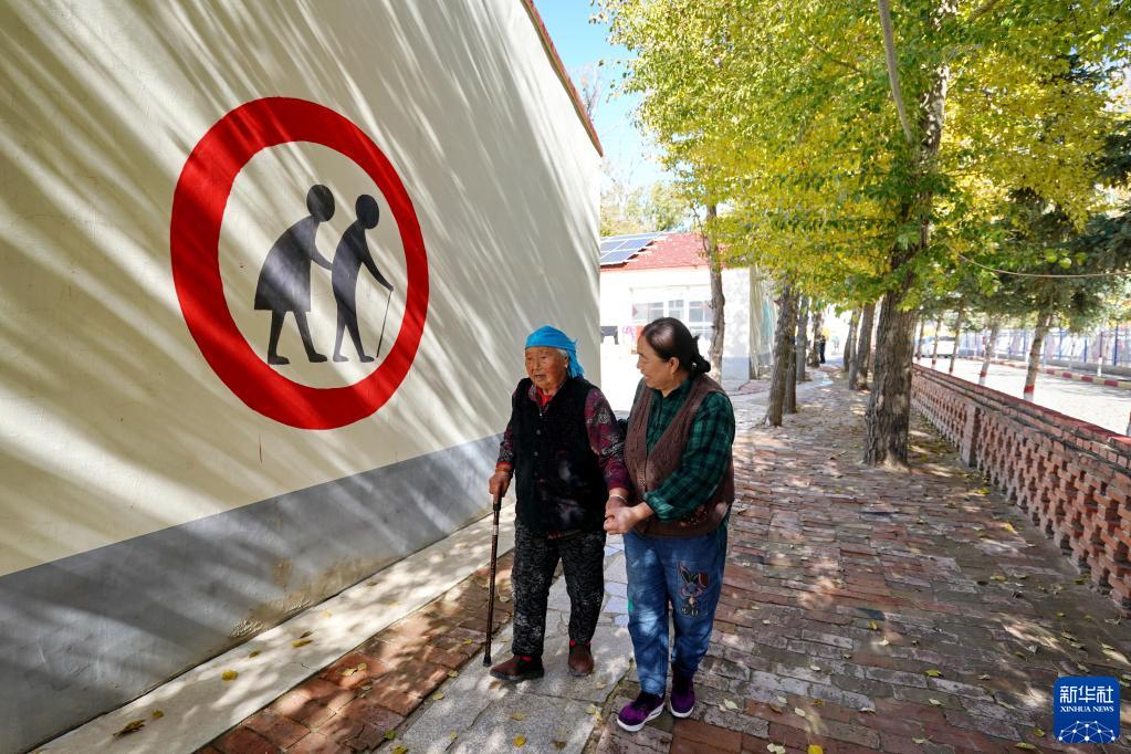 10月14日,居住在河北省康保縣土城子鎮互助幸福院的老人在院子裏行走。