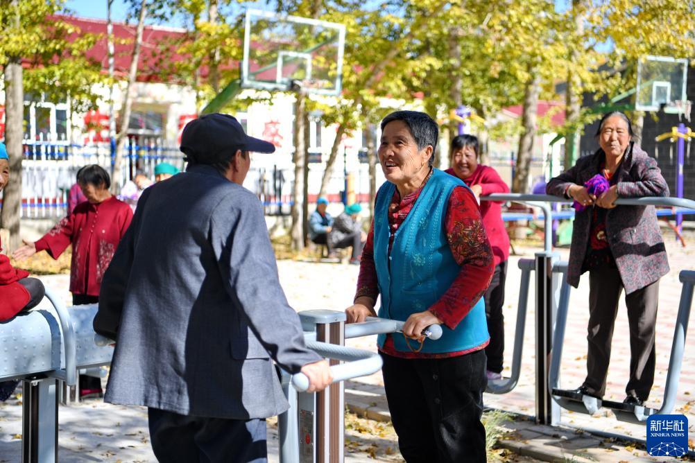 10月14日,居住在河北省康保縣土城子鎮互助幸福院的老人們在院子裏休閒。