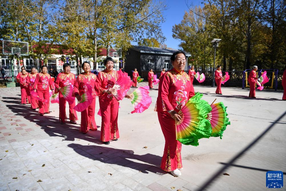 10月14日,老人們在河北省康保縣土城子鎮互助幸福院內跳舞。