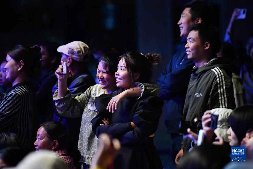10月14日,村民和游客在大南坡村內廣場觀看演出。