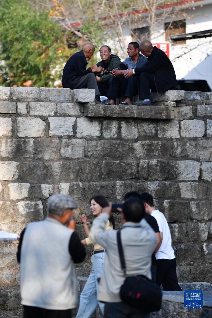10月14日,游客(下)在大南坡村參觀。