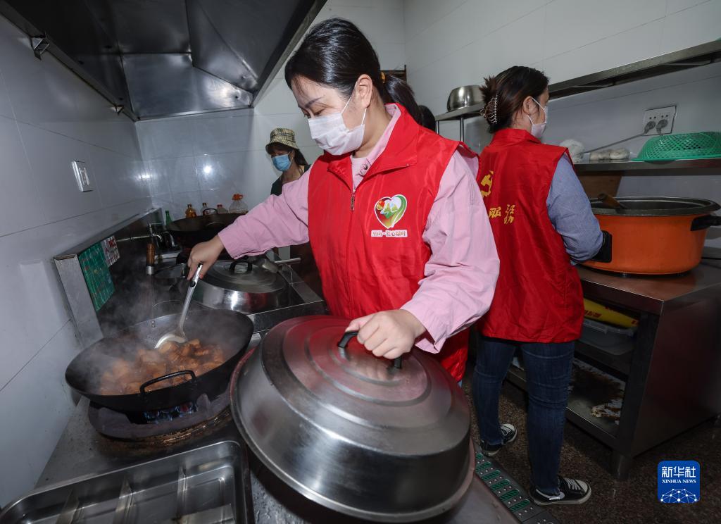 10月15日,黨員志願者在杭州市富陽區裏山鎮民強村老年食堂幫廚。