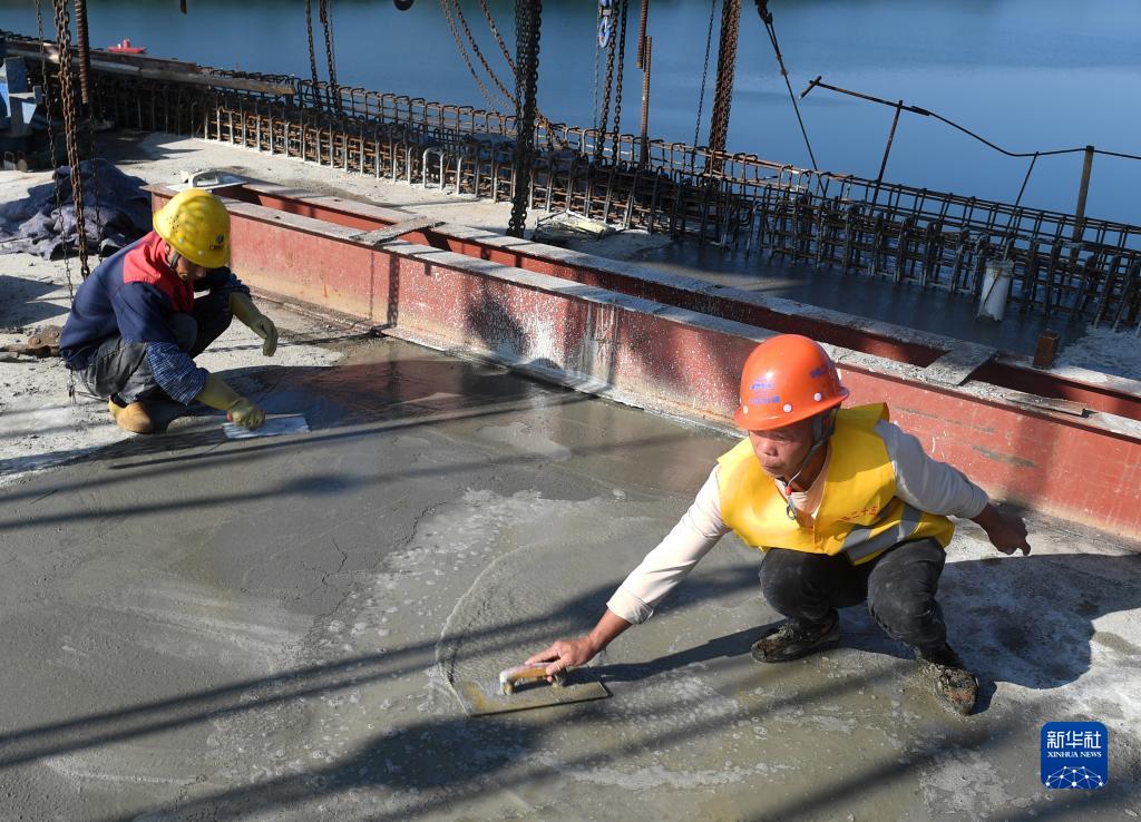 10月15日,中鐵二十五局工人對合龍後的湘桂鐵路柳江雙線特大橋進行保養。