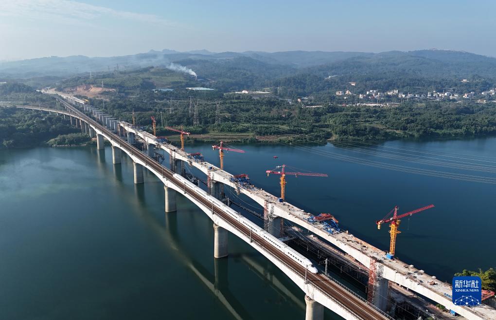 10月15日凌晨,位於廣西柳州市的湘桂鐵路柳江雙線特大橋連續梁順利合龍,為柳州鐵路樞紐擴能改造工程實現今年底竣工開通提供保障。