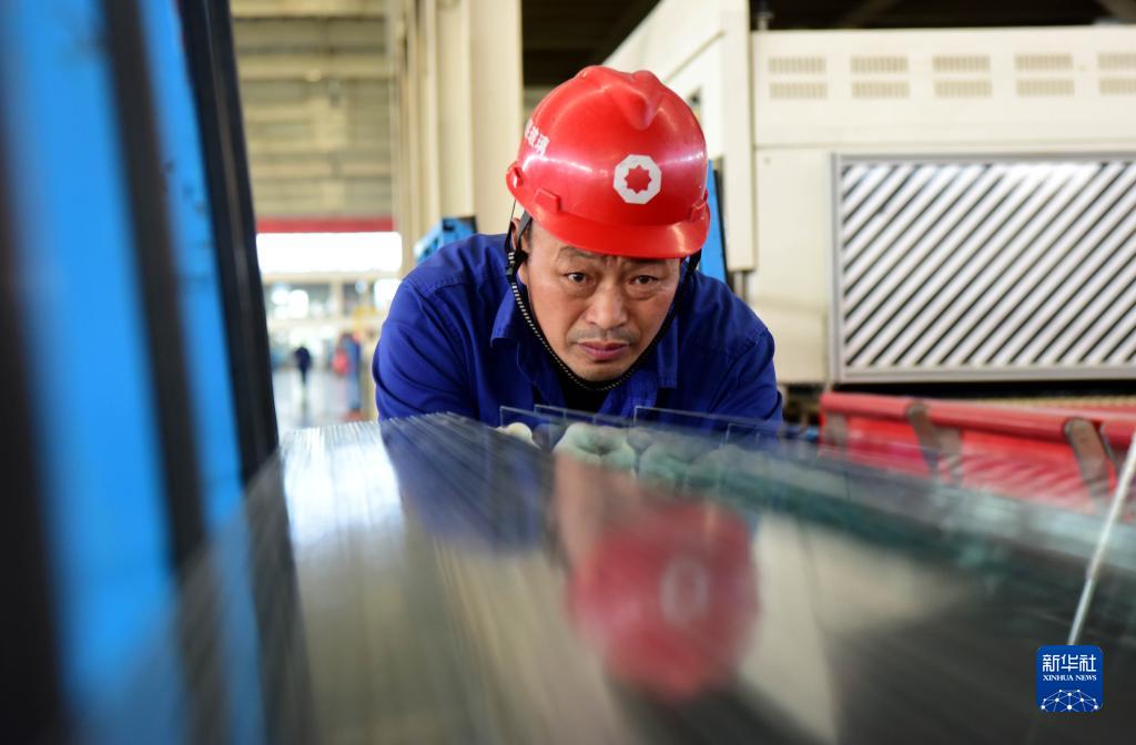 10月14日,工人在河南省中聯玻璃有限責任公司浮法玻璃生産車間工作。