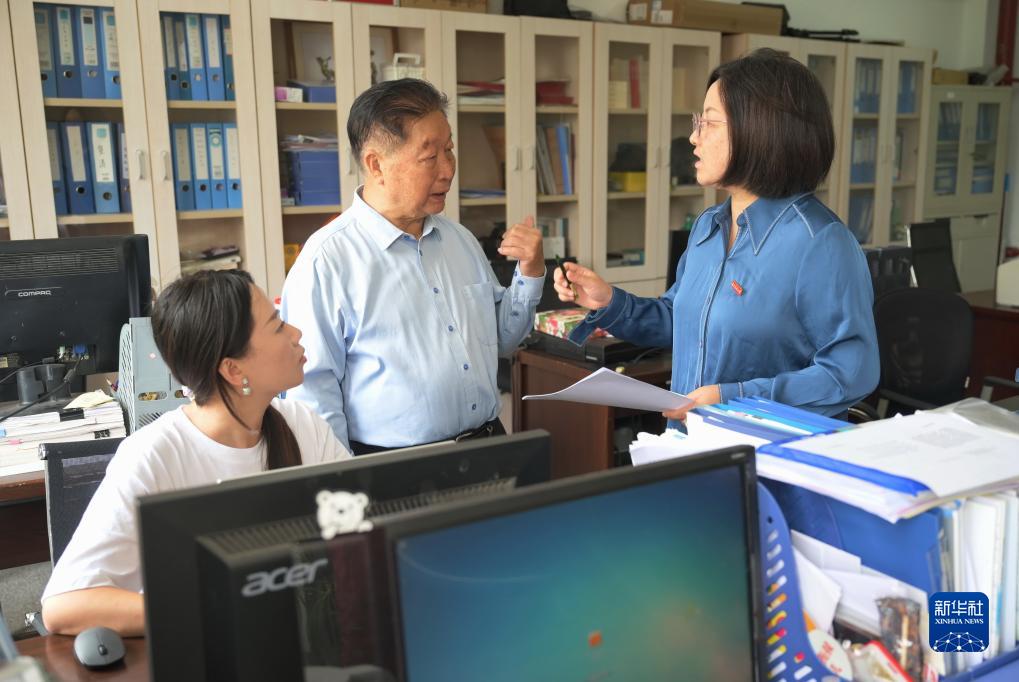 10月14日,林佔熺教授(中)在福州與同事交流。