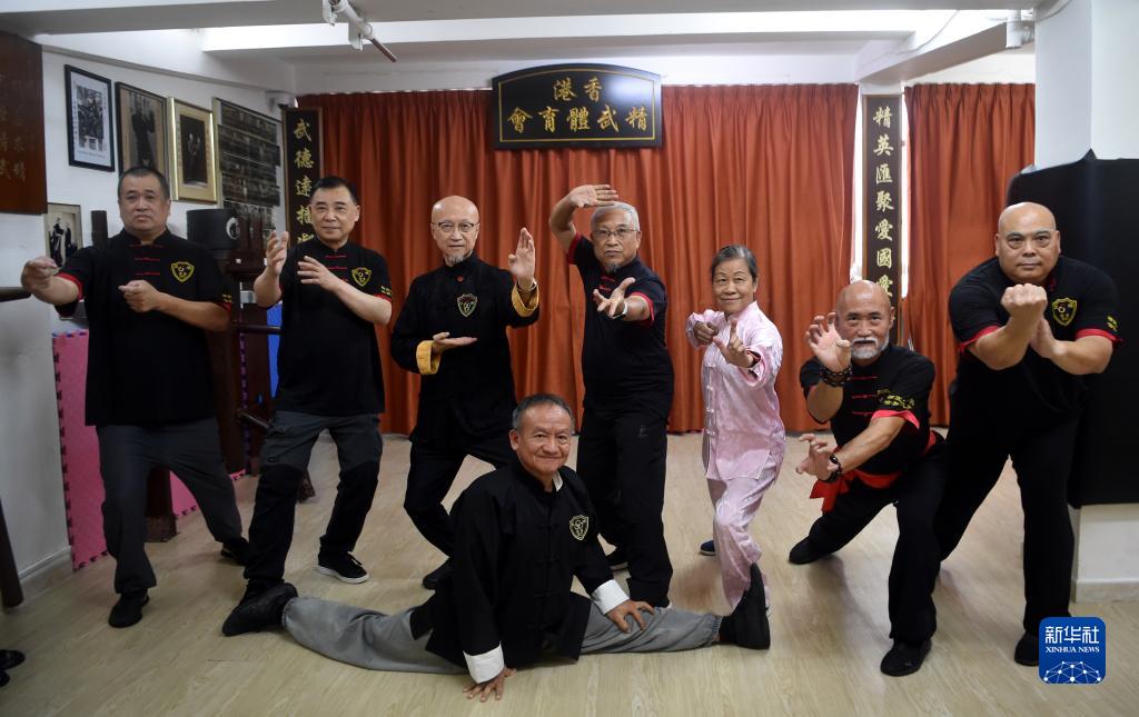 香港精武體育會成員合影(8月18日攝)。