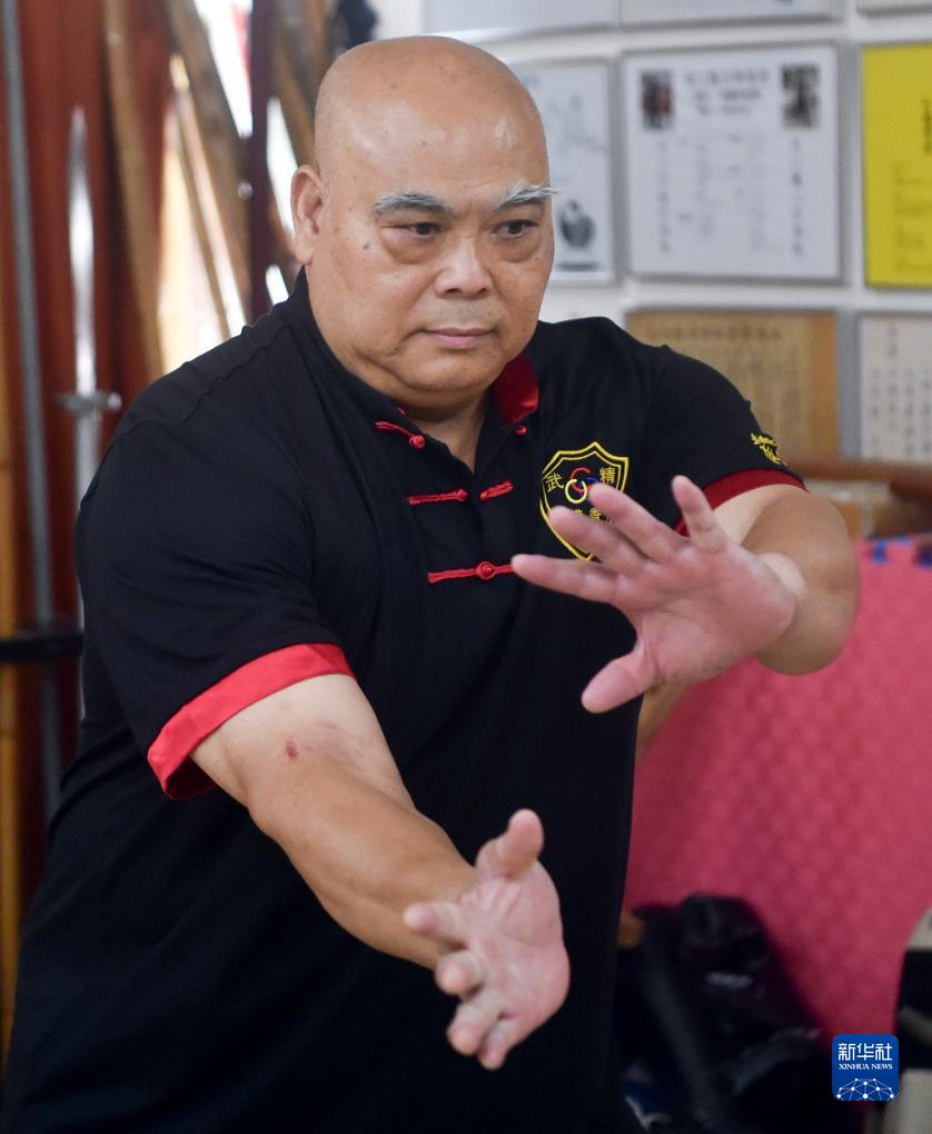 8月18日,黃耀球展示功夫(8月18日攝)。