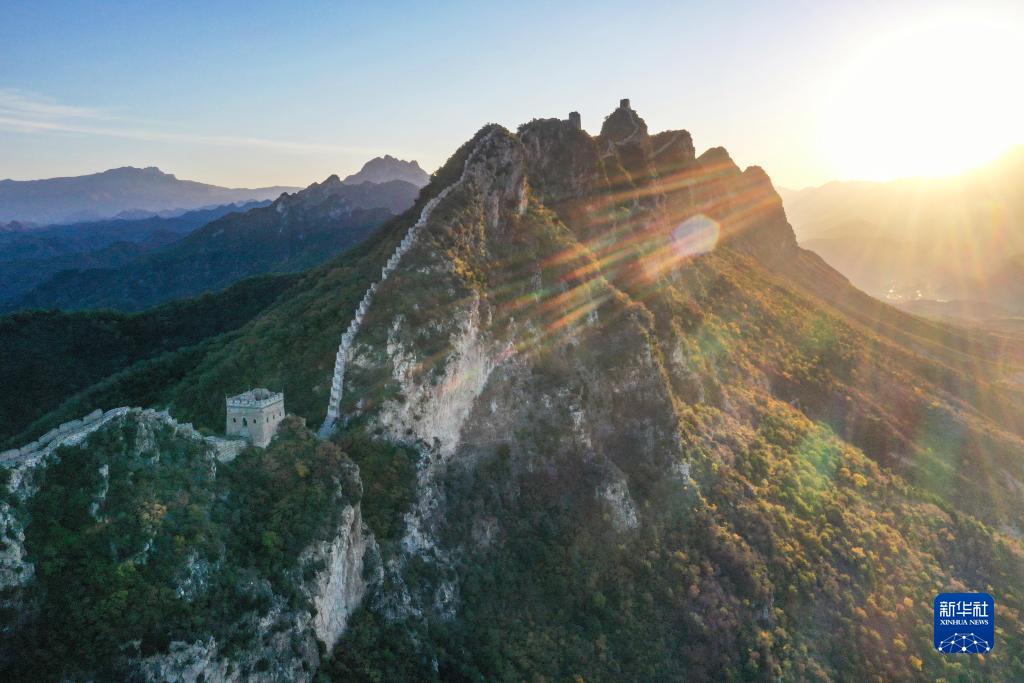 朝陽下的司馬&長城(無人機照片,10月15日攝)。