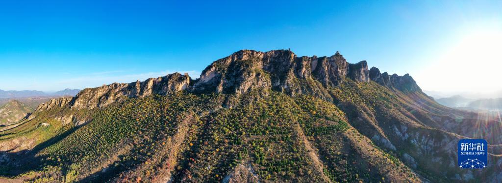 朝陽下的司馬&長城(無人機全景照片,10月15日攝)。
