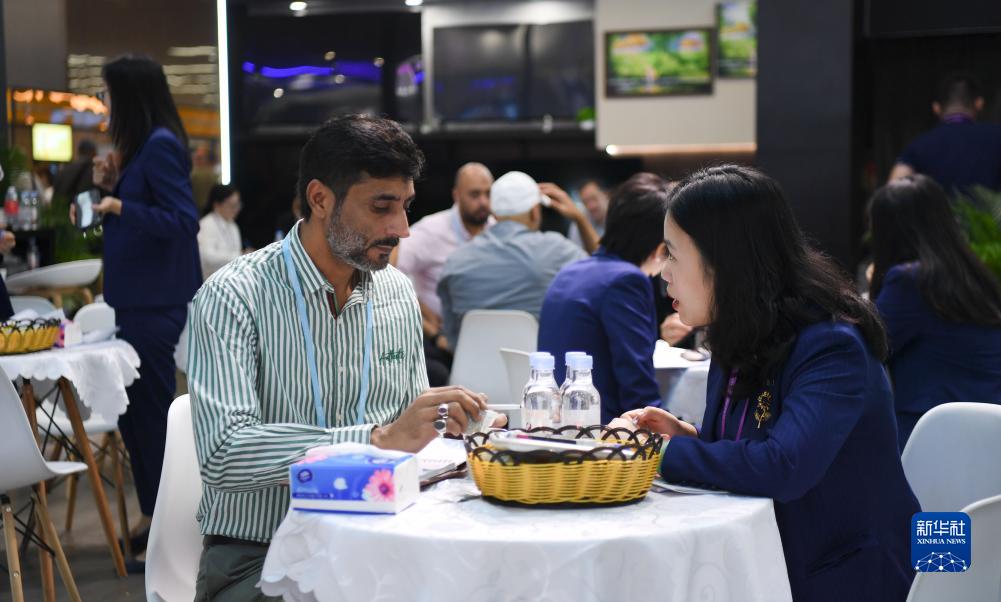10月15日,在一家液晶電視展&,外國採購商在洽談業務。
