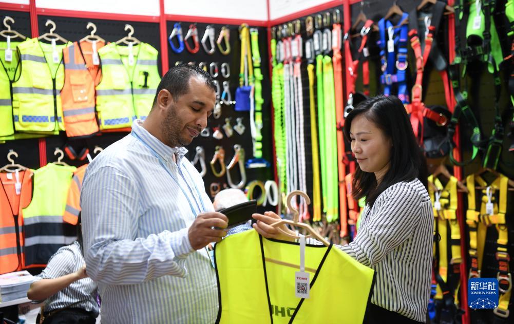 10月15日,外國採購商在了解勞保用品。