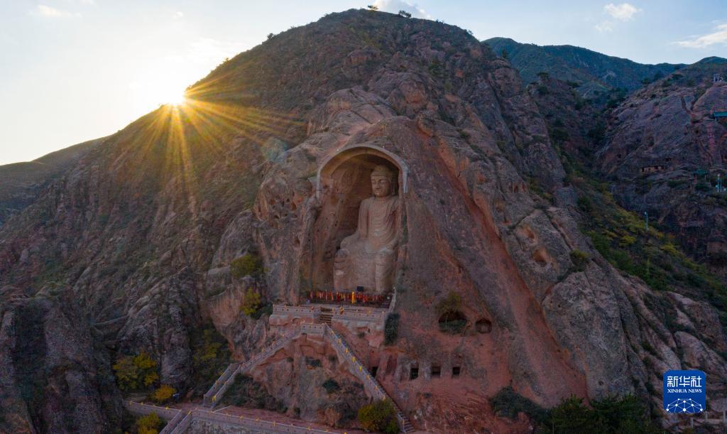金秋時節,位於寧夏固原市原州區的須彌山石窟景區秋意漸濃,風景如畫。