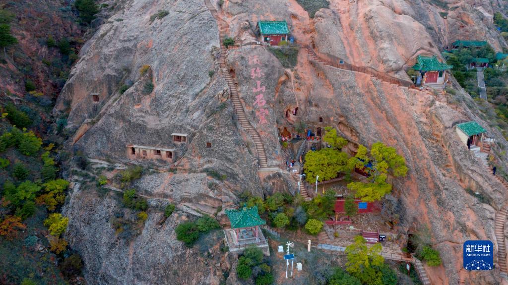 金秋時節,位於寧夏固原市原州區的須彌山石窟景區秋意漸濃,風景如畫。