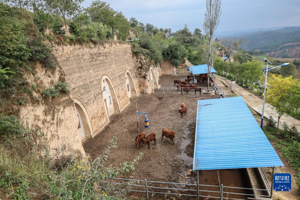這是10月12日在甘肅省平涼市崇信縣黃寨鎮甘莊村拍攝的窯洞養牛産業。