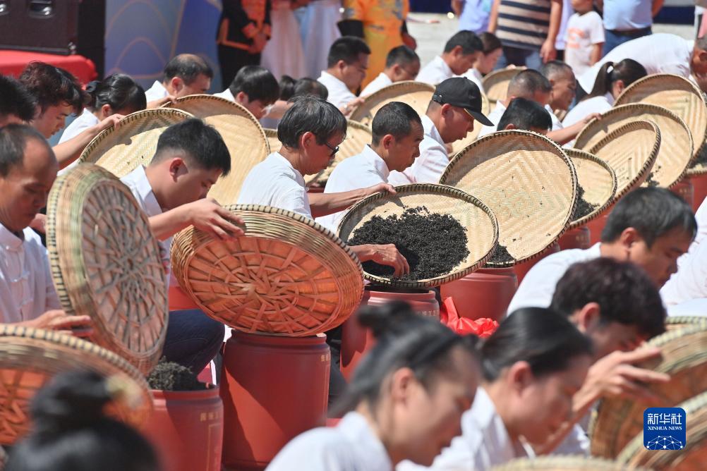 10月15日,在梧州市蒼梧縣六堡鎮六堡茶文化廣場,當地制茶人進行封茶儀式。