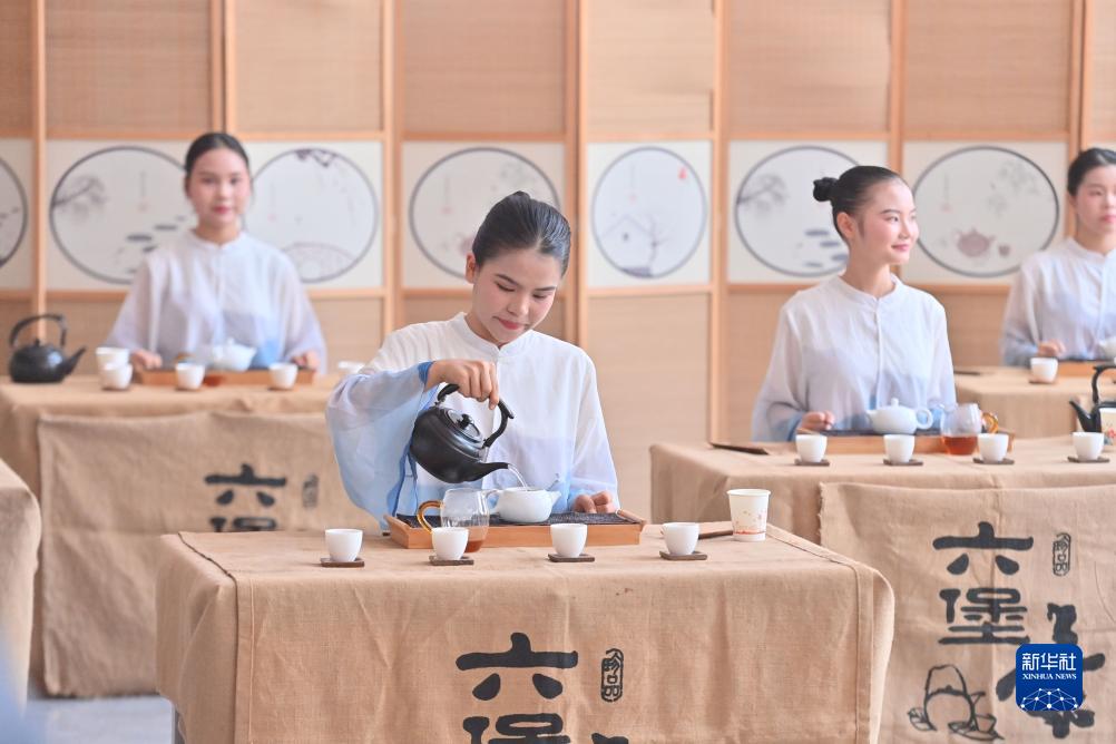 10月15日,在梧州市蒼梧縣六堡鎮六堡茶文化廣場,工作人員進行茶藝表演。