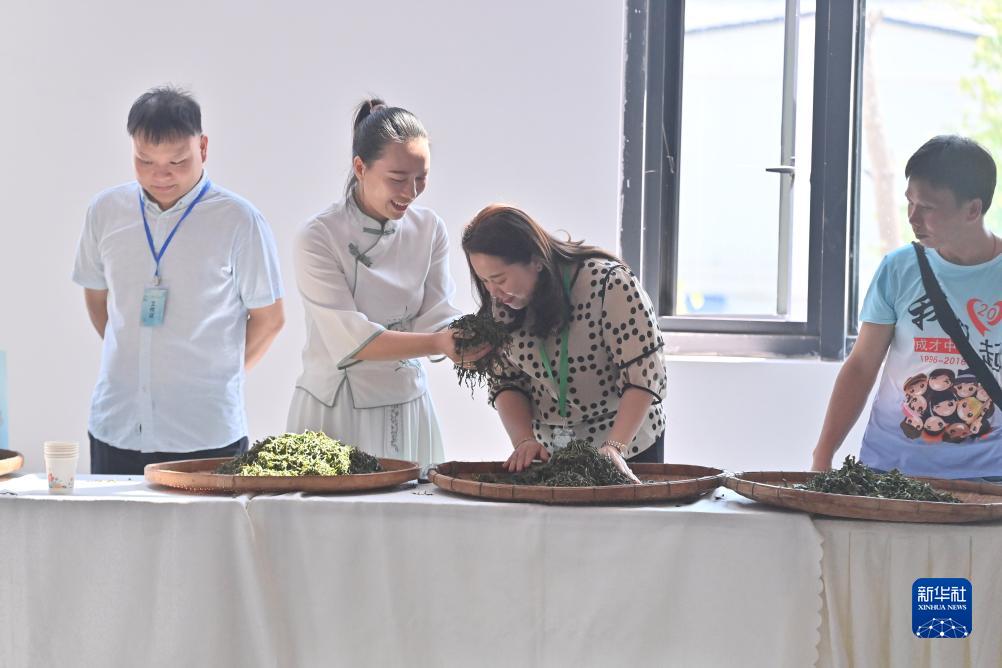 10月15日,在梧州市蒼梧縣六堡鎮六堡茶文化廣場,觀眾體驗製作六堡茶。