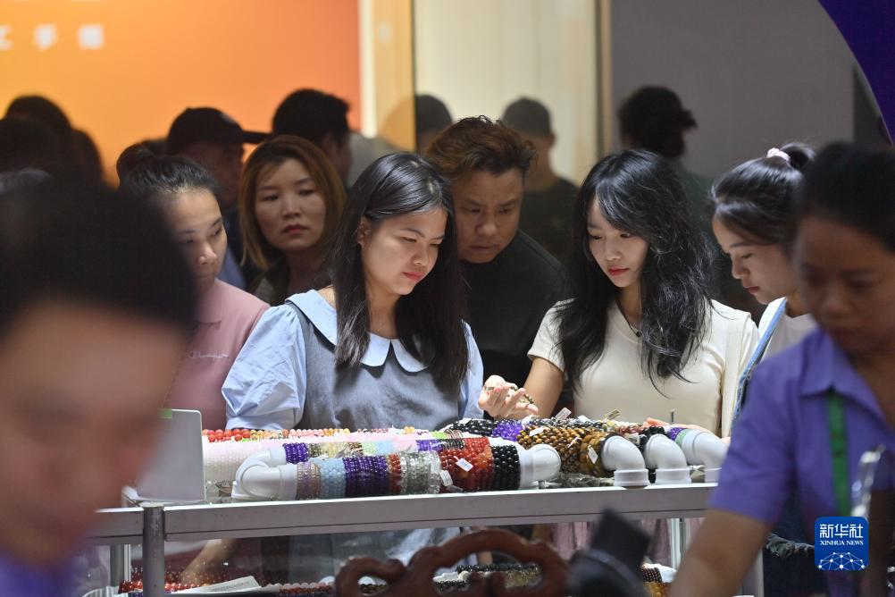 10月15日,在梧州市六堡茶城,觀眾選購飾品。