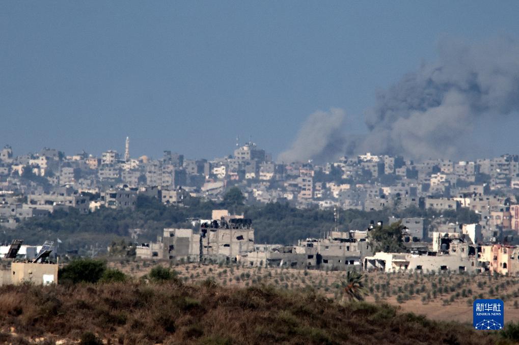 這是10月15日在加沙邊境以色列一側拍攝的以色列轟炸加沙地帶後升起的濃煙。