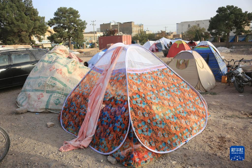 10月15日,阿富汗赫拉特省赫拉特市居民住在空地的帳篷中躲避余震。