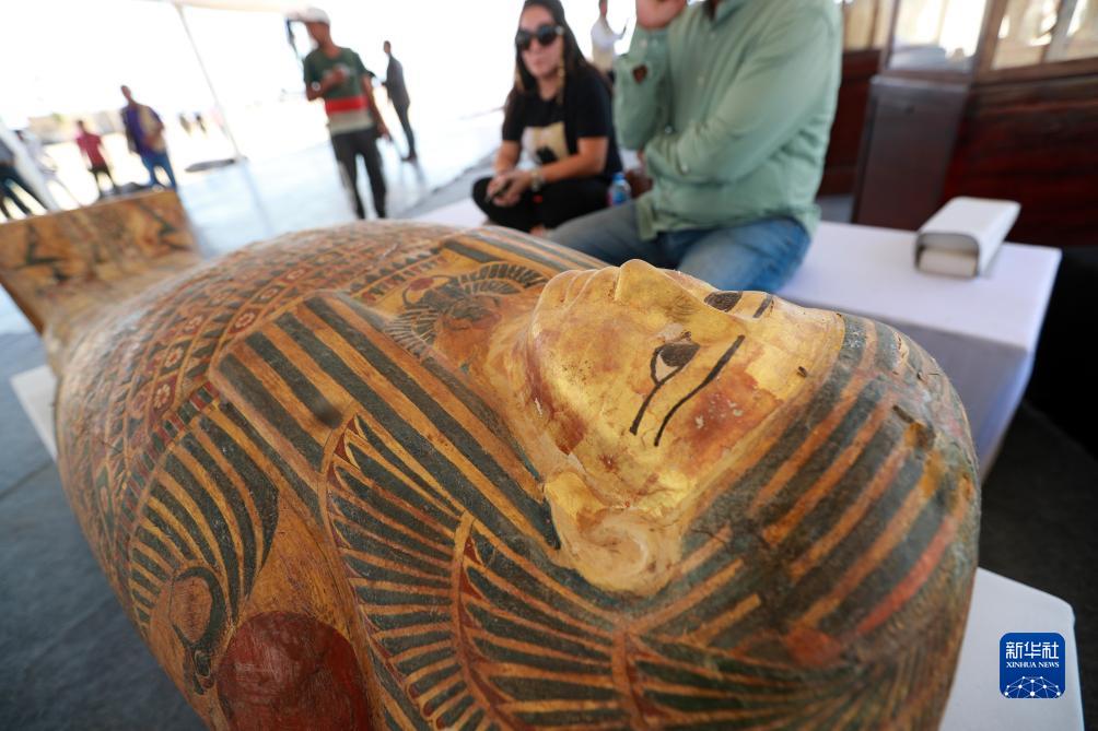 這是10月15日在埃及明亞省考古現場拍攝的彩繪木乃伊棺槨。
