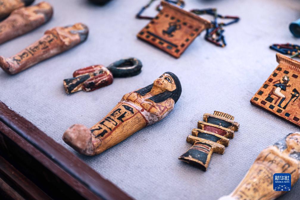 這是10月15日在埃及明亞省考古現場拍攝的出土文物。