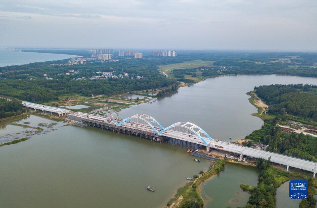 海南環島旅游公路是建設海南自貿港和創建國際旅游消費中心的先導性重大基礎設施項目,該公路主線總里程988.2公里,串聯沿途特色海灣、海角、特色小鎮和旅游景區、濱海度假區等。海南環島旅游公路臨高段全長約58公里,目前主線路基段已建設完成,工人們正在對文瀾江大橋進行橋面鋪裝、護欄、拱肋面漆噴塗等施工。