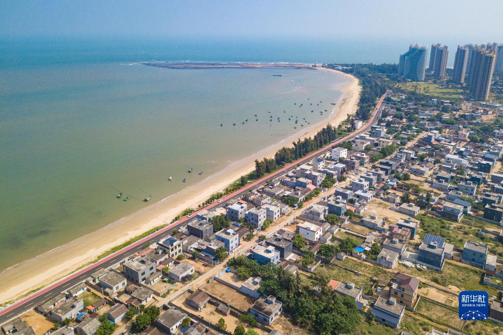10月15日拍攝的海南環島旅游公路臨高段景色(無人機照片)。