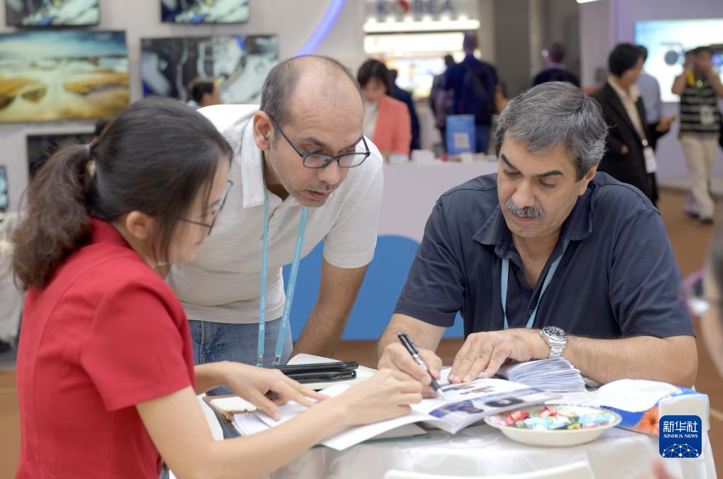 10月15日,阿根廷客商在廣交會上參觀、洽談。