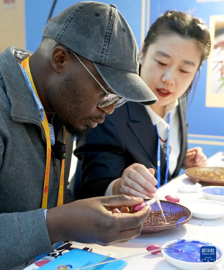 第三屆“一帶一路”國際合作高峰論壇將於10月17日至18日在北京舉行。設在新聞中心內的非遺互動展示區吸引了眾多媒體記者前來體驗。