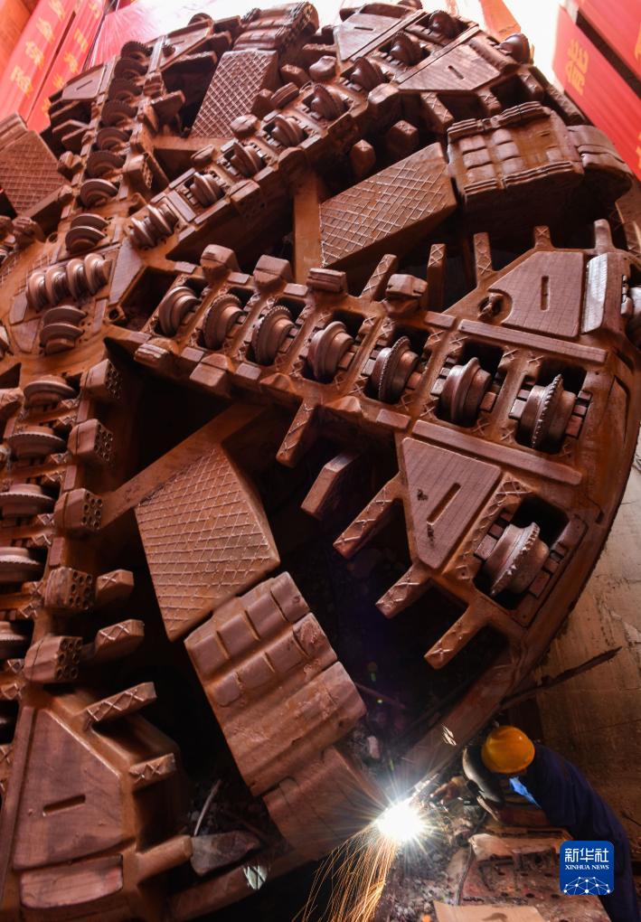 10月16日,施工人員為出洞的“開路先鋒2號”盾構機進行焊接作業。