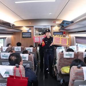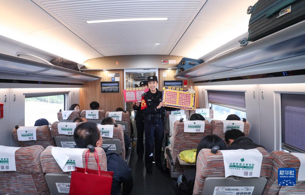 當日,瀋陽鐵路公安局瀋陽公安處乘警支隊女子乘務大隊民警走進高鐵車廂向乘客進行反詐騙宣傳和安全乘車宣傳,增強乘客保護人身和財産安全的意識。