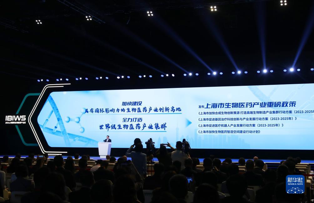 這是2023上海國際生物醫藥産業周開幕活動中舉行的上海市生物醫藥産業重磅政策發布儀式(10月16日攝)。