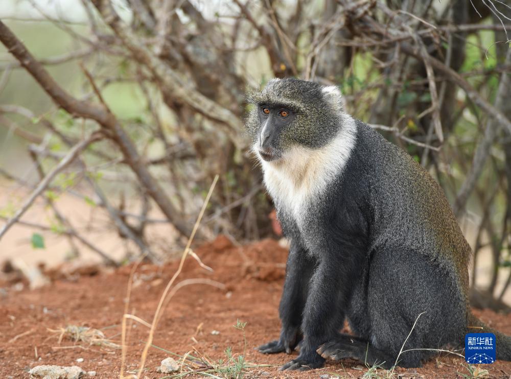 這是10月15日在肯尼亞內羅畢國家公園拍攝的青長尾猴。