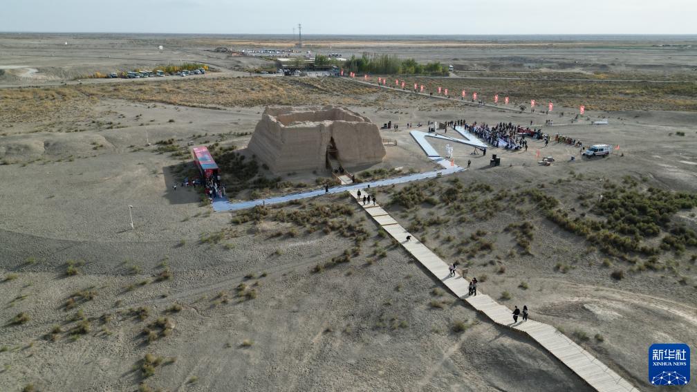 這是10月15日在甘肅省敦煌市拍攝的玉門關遺址(無人機照片)。