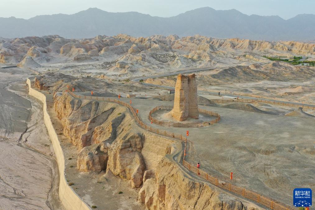 這是9月8日在新疆庫車市拍攝的克孜爾尕哈烽燧(無人機照片)。