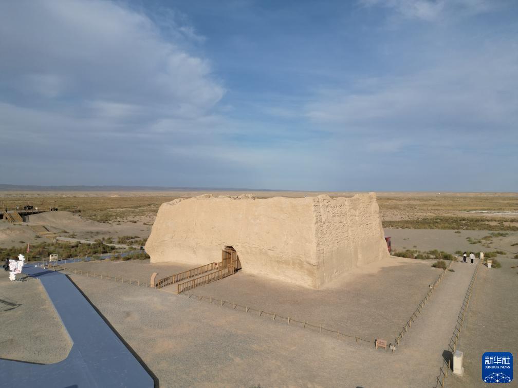 這是10月15日在甘肅省敦煌市拍攝的玉門關遺址(無人機照片)。