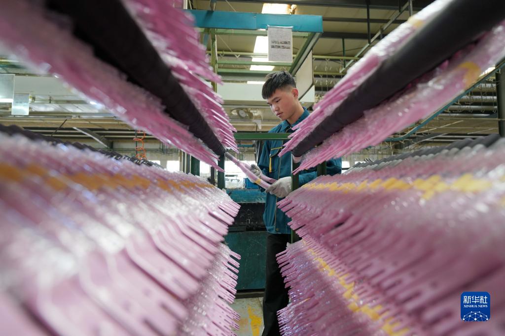 10月16日,平鄉縣一家童車生産企業的工人在整理童車部件。
