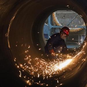 10月16日拍攝的蘭州新區蘭石集團高端裝備産業園生産現場。