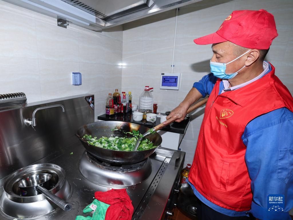 10月17日,愛心廚師在東白湖鎮樂齡中心愛心食堂的廚房內給老人們烹飪午餐。