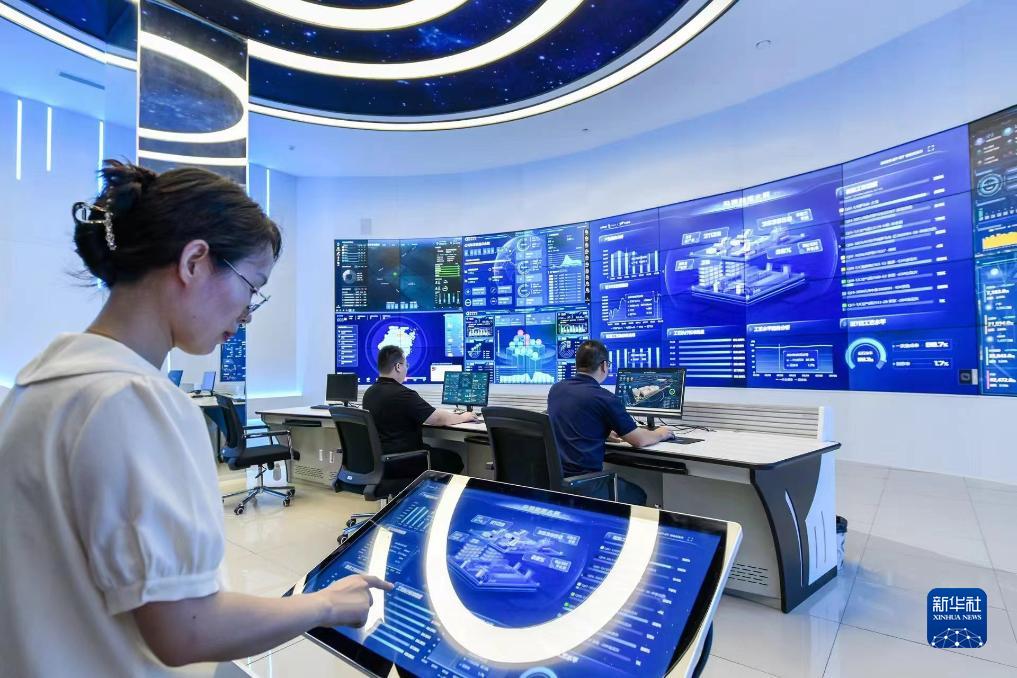 工作人員在浙江迎豐科技股份有限公司的“智慧工廠”處理數據(7月27日攝)。