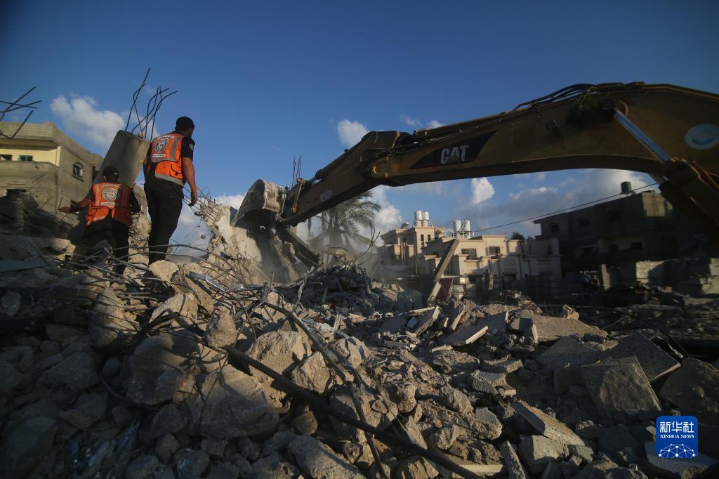 10月16日,在加沙地帶南部城市拉法,人們在遭以色列空襲損毀的建築廢墟中實施救援。