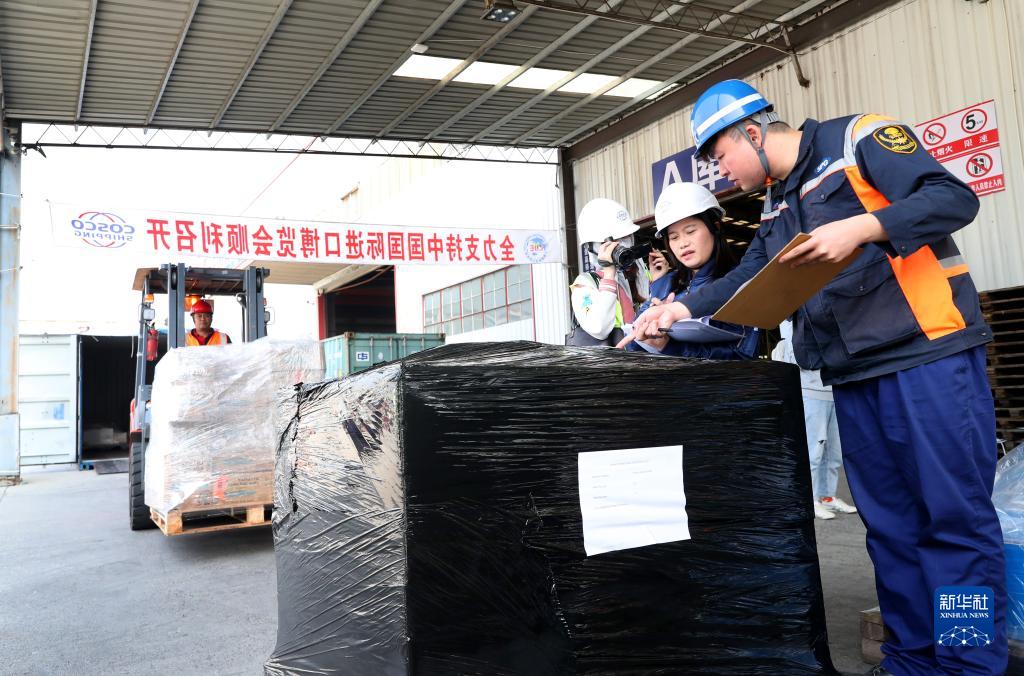 當日,中遠海運承運的第六屆進博會新西蘭及南太平洋地區展品,由外高橋碼頭運抵上海遠洋國際集裝箱堆場並完成海關拆箱核驗工作。