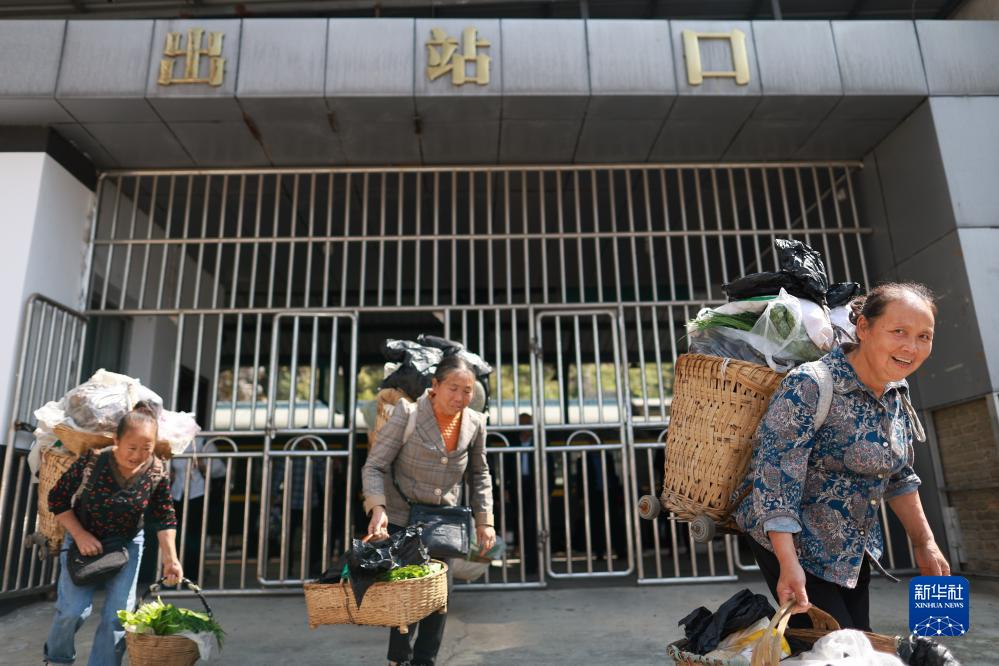 10月17日,5630次列車到達桐梓站後,村民攜帶農産品下車。
