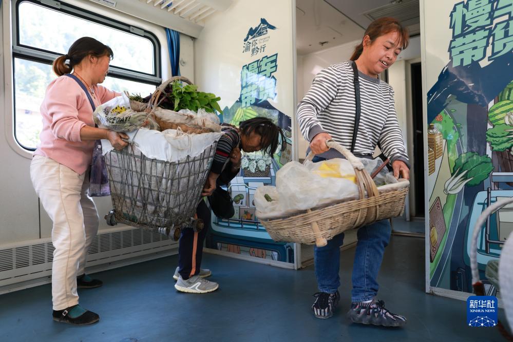 10月17日,沿線村民攜帶農産品登上5630次列車。